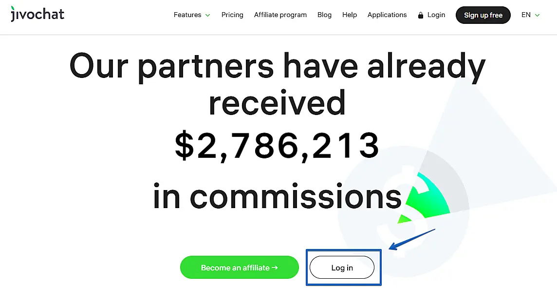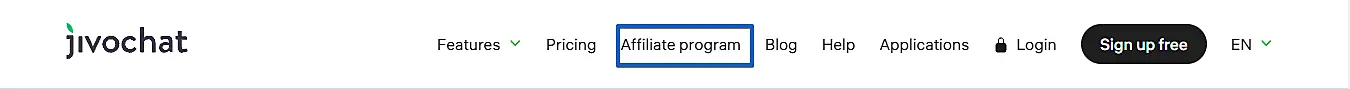 Visit jivochat.com and click the Affiliate program link in the top menu bar.1