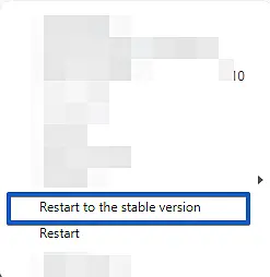 Step 2: When you find it, right-click on the icon -> Then click on the option "Restart in a more stable version" (if you don't have this option, click on "Restart")
