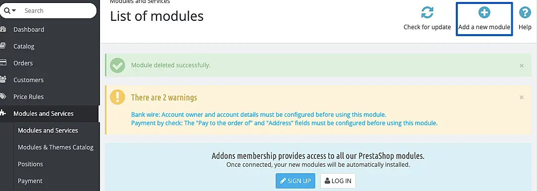 Then, go to your PrestaShop admin panel and navigate to the Modules section.