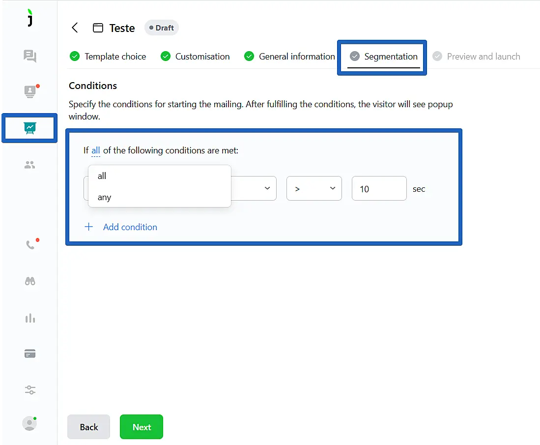 When we create interactive messages and pop-ups in the Marketing section, it's important to correctly target the segment for which the campaign will be triggered. In this article, we'll consider each of the conditions.