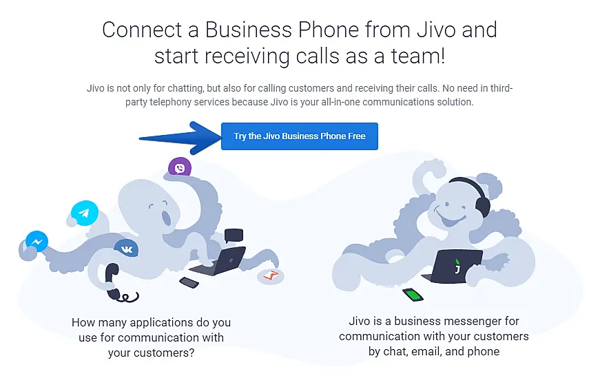 3. Press the "Try the JivoChat Business Phone Free" button to proceed.