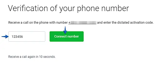 5. Insert the activation code and press "Connect Number" to finish the process.